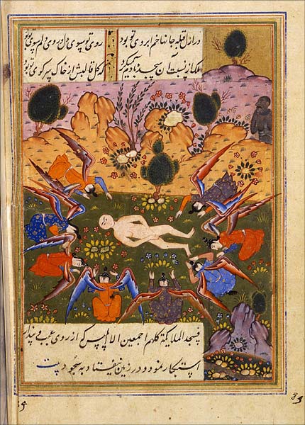Den Nachkommen Adams war bestimmt, so unterschiedlich zu sein wie diese Handvoll Erde, aus der ihr Vorfahre erschaffen worden war; alle haben verschiedene Erscheinung, Eigenschaften und Vorzüge.“ Die Erde für Adams Kopf kam aus Mekka, die für seine Brust und seinen Rücken aus Jerusalem. Die Erschaffung Adams wird als ein Prozess gedeutet, der 40 Tage/Jahre in Anspruch nahm. Der Körper Adams war hohl wie ein Tongefäß, in das man hineinblasen konnte. So war es dem Satan möglich, durch den Mund in den Tonkörper Adams hinein zu fahren und auf der Rückseite hinauszugehen.