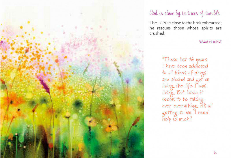 Jesus sagt: „Geh ins Feld und betrachte die Wildblumen. Sie machen kein Aufheben um ihr Äußeres – aber hast du schon einmal solche Farben und Formen gesehen? Die zehn bestgekleideten Männer und Frauen des Landes sehen neben ihnen schäbig aus. Wenn Gott den Wildblumen, die meistens nicht gesehen werden, so viel Aufmerksamkeit schenkt, meinst du nicht, dass er sich auch um dich kümmert, stolz auf dich ist und sein Bestes für dich möchte?“ Lukas 12,27-28