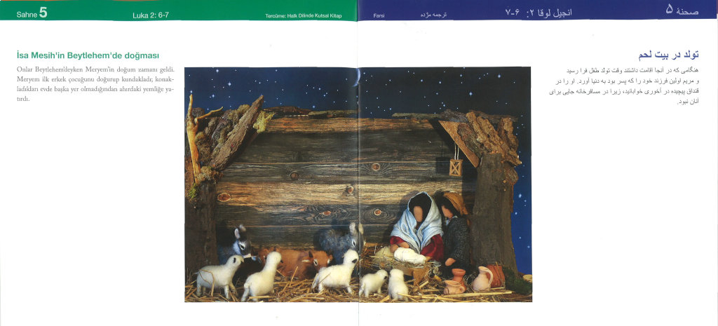 Diese farbigen, wunderschön aufgemachten Broschüren enthalten die Weihnachtsgeschichte in vier verschiedenen Sprachen. Dafür wurden ausschließlich die Bibeltexte zum Weihnachtgeschehen aus den Evangelien verwandt.