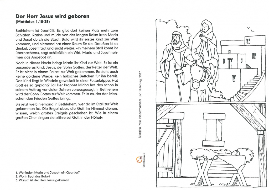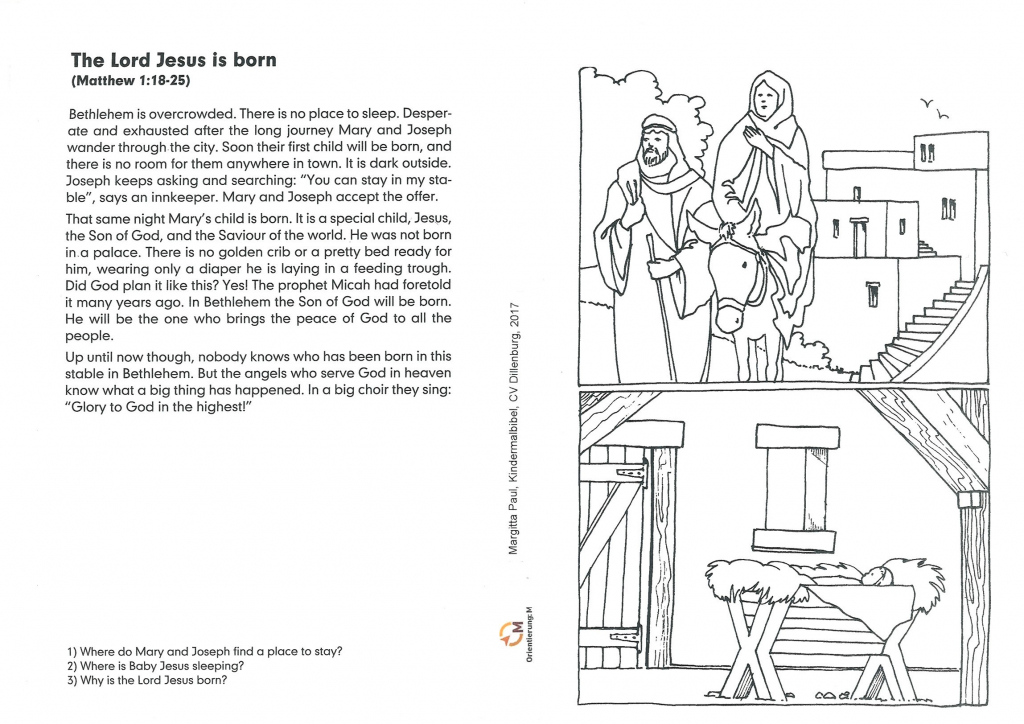 Sie suchen zum Advent eine kleine Aufmerksamkeit für die Kinder in Ihrer Nachbarschaft? Sie möchten den früheren kleinen Besuchern in Ihrer Kinderstunde einen kleinen Weihnachtsgruß zusenden, wenn Sie sie schon nicht so treffen können? Dann nutzen Sie doch die Weihnachtsgeschichte aus der Kinder-Mal-Bibel von Margitta Paul: Wir stellen Ihnen hier - mit freundlicher Genehmigung des Verlags - neben der Malvorlage den Text der Weihnachtsgeschichte in neun verschiedenen Sprachen als Download zur Verfügung. So können Sie auch 2020 Kinder und ihre Familien mit der Geschichte in der Heiligen Nacht vertraut machen. Auch wenn Weihnachten in diesem Jahr anders gefeiert wird als sonst, so müssen wir es nicht übergehen.