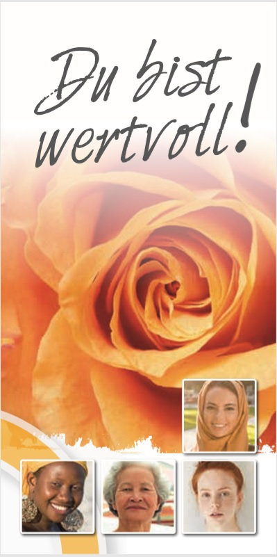 Mit dem Traktat „Du bist wertvoll!“ wollen wir besonders Frauen erreichen. Es ist so geschrieben, dass Sie es bei einer persönlichen Begegnung oder bei Verteilaktionen jeder Frau geben können. Wir freuen uns, dass wir es mittlerweile in 11 Sprachen anbieten können: